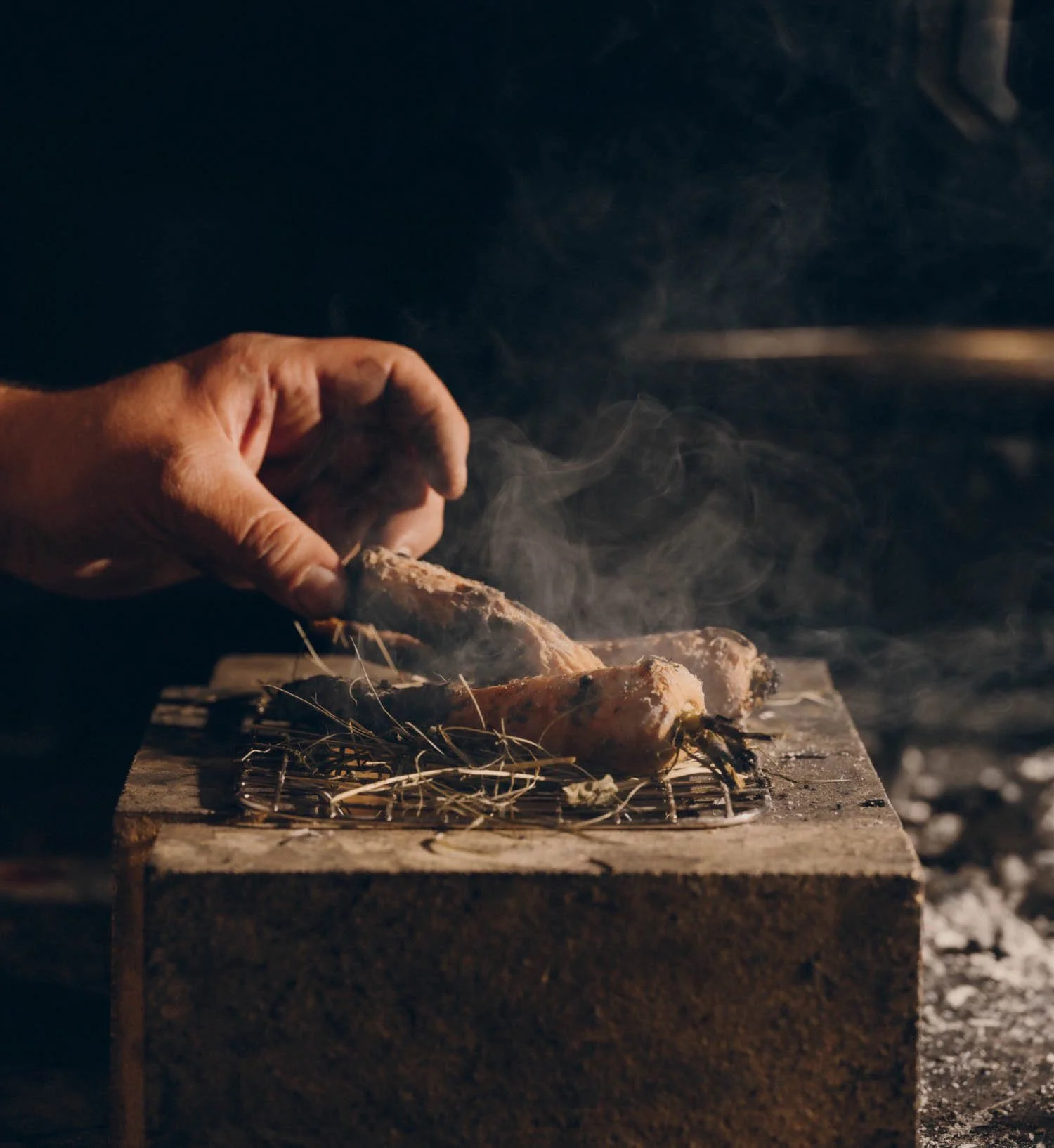 Immersive Forest Dining: Guests gather around an open fire in a hidden forest setting, sharing a communal meal crafted by Chef Roland Lamprecht. The experience is as much about presence and ritual as it is about flavor.